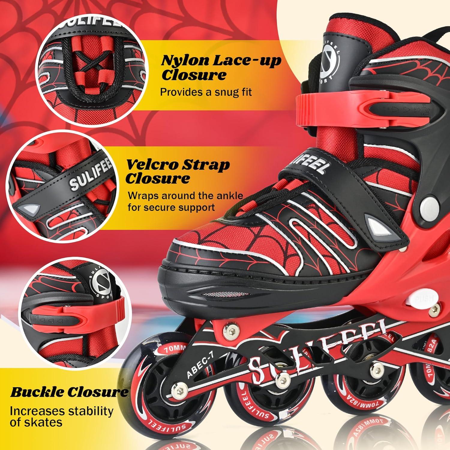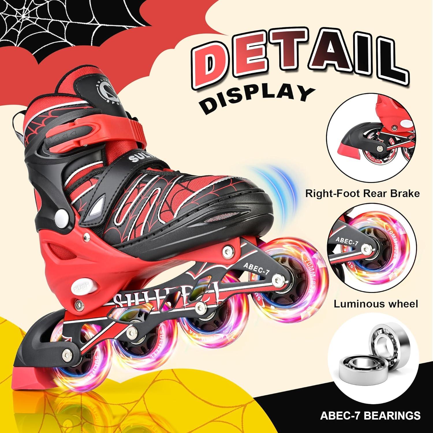 Don’t miss out on our limited-time offer: buy SULIFEEL Inline Skates with Blades for Kids Boys Youth Ages 6-12 8-12 5-8 with Light up Wheels 4 Sizes Adjustable Roller Skates for Beginners Indoor Outdoor Sports(Spider Red), get {accessory} 50% off!